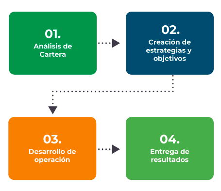Análisis de Cartera: En esta etapa realizaremos un análisis de su cartera, observando el perfil de sus clientes, número de cuentas, monto de las operaciones o créditos, documentación que utiliza para respaldar sus operaciones (contrato, factura, pagaré etc.) de esta forma Villafuerte brindara soluciones mediante un plan de acción personalizado para su cobranza.